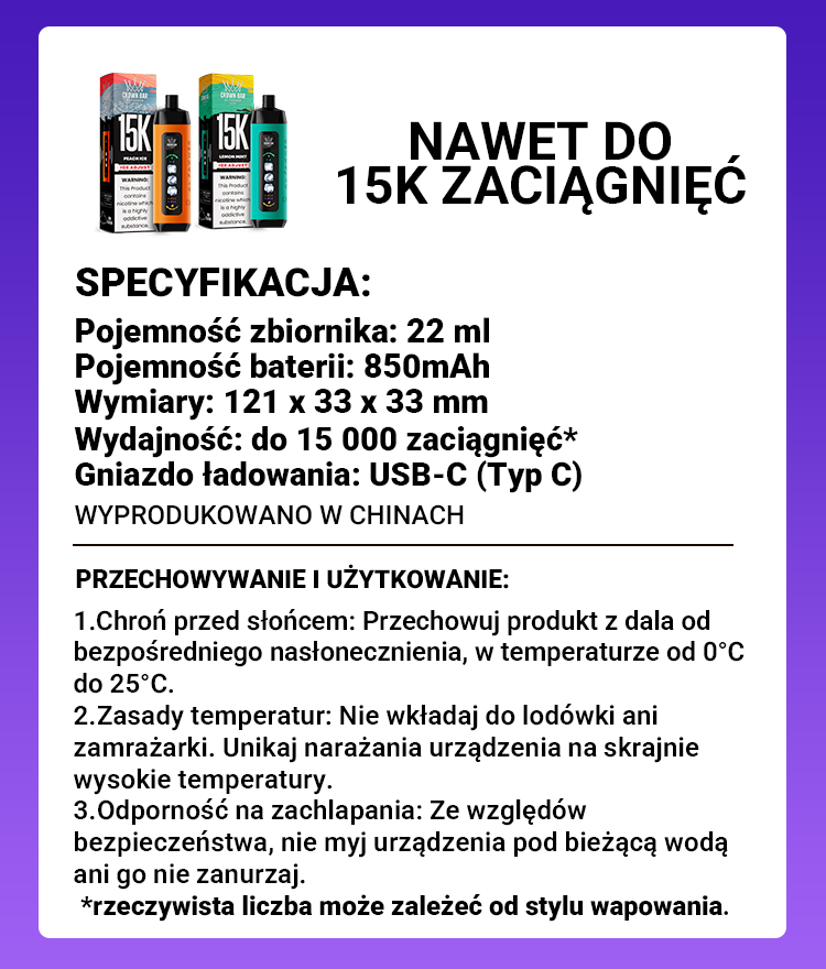 Lemon Mint -15000 Puffs Ice Adjust Al Fakher Crown Bar